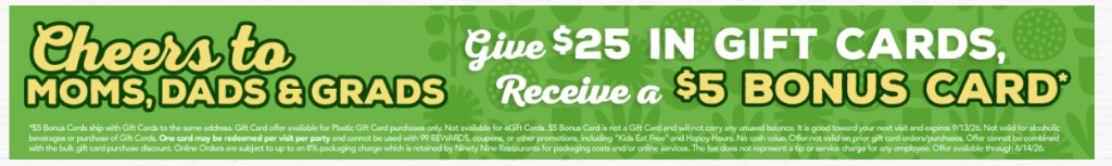 Buy a $25 99 Restaurant & Pub gift card and get a $5 bonus card free