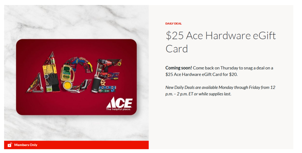 - New deals offered weekdays 12 p.m. – 2 p.m. ET or while supplies last