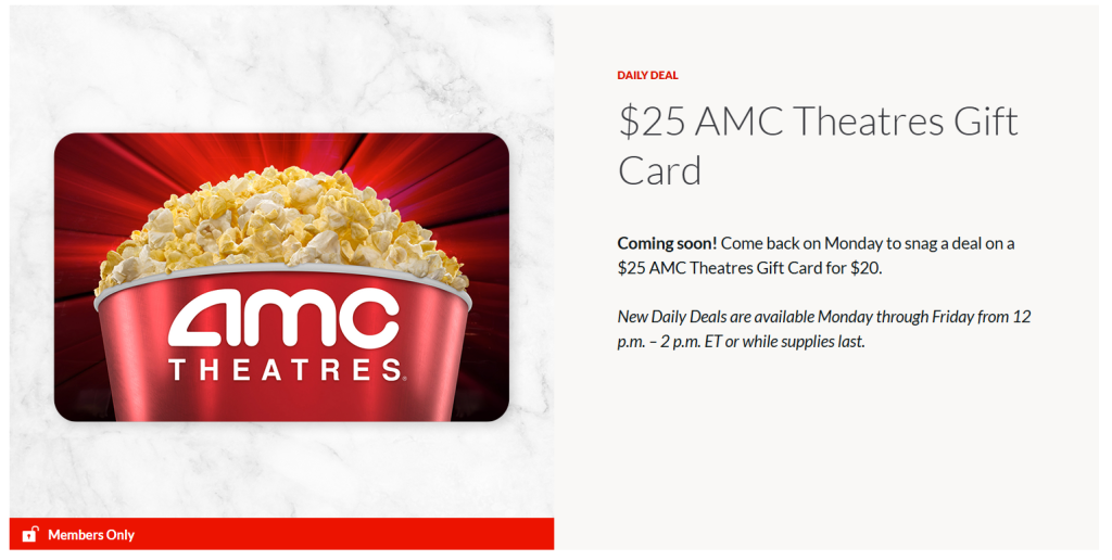 AARP members-only daily deal: Get a $25 AMC Theatres gift card for $20