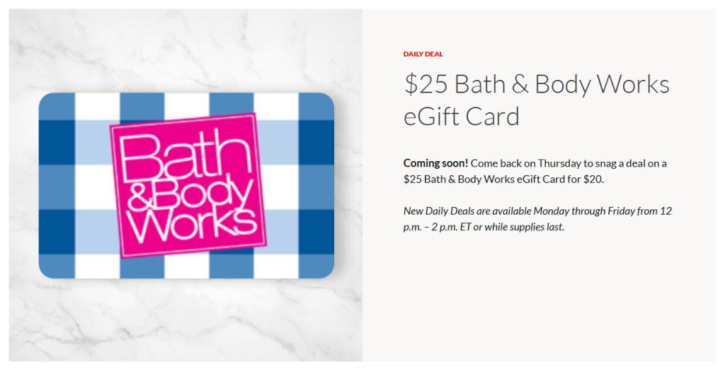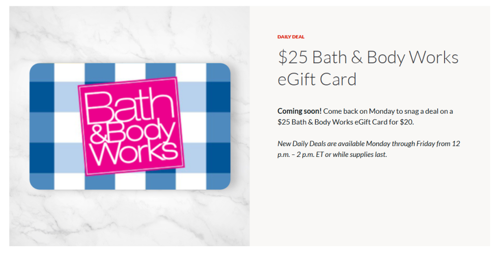 - New deals offered weekdays 12 p.m. – 2 p.m. ET or while supplies last
