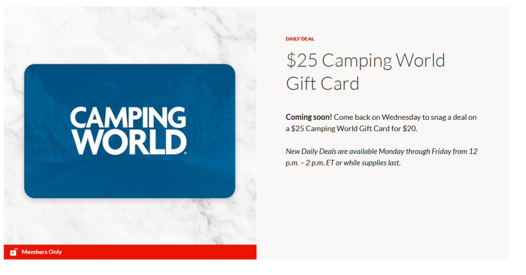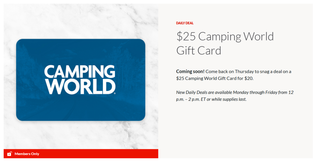 AARP members-only daily deal: Get a $25 Camping World gift card for $20