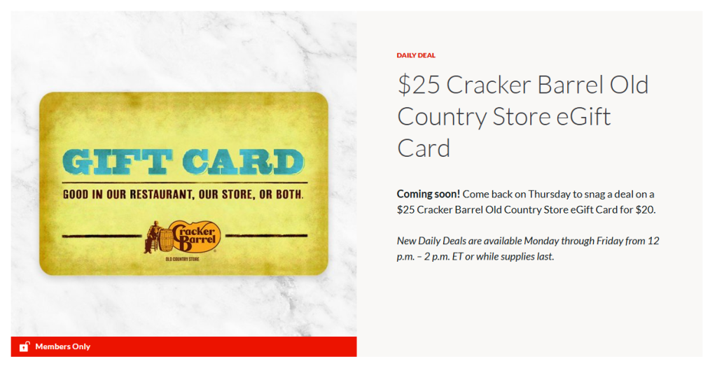 AA4RP members-only daily deal: Get a $25 Cracker Barrel gift card for $20