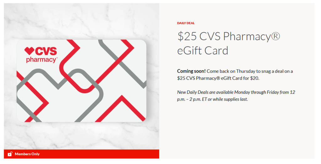 - New deals offered weekdays 12 p.m. – 2 p.m. ET or while supplies last
