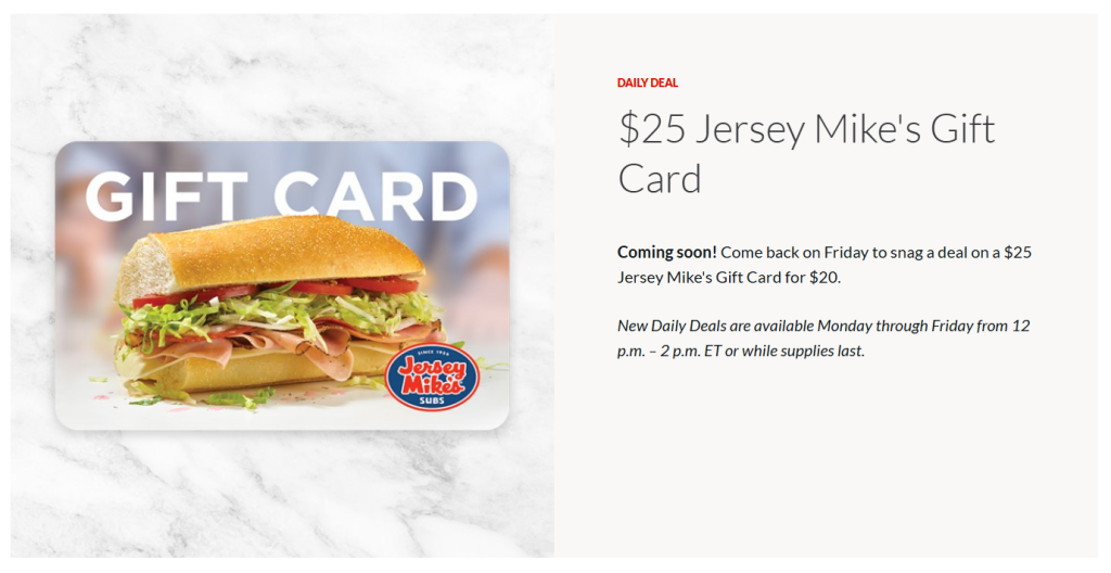 • New deals offered weekdays 12 p.m. – 2 p.m. ET or while supplies last