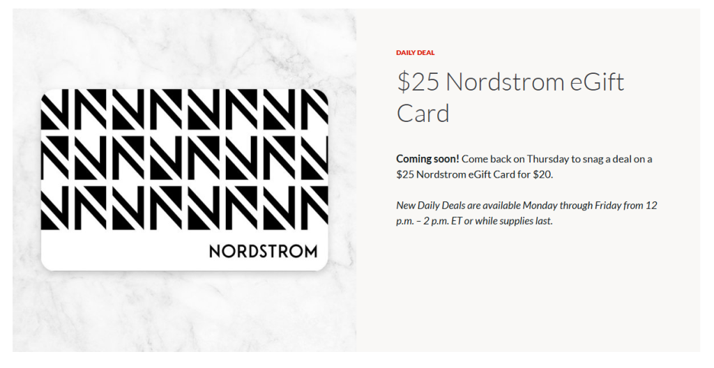 - New deals offered weekdays 12 p.m. – 2 p.m. ET or while supplies last
