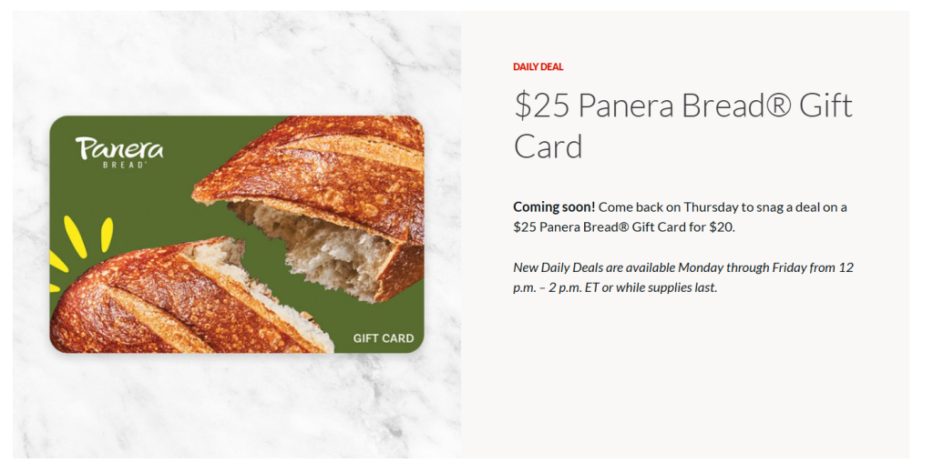 • New deals offered weekdays 12 p.m. – 2 p.m. ET or while supplies last