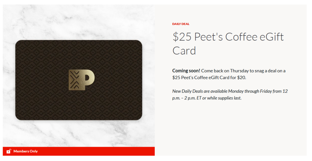 - New deals offered weekdays 12 p.m. – 2 p.m. ET or while supplies last