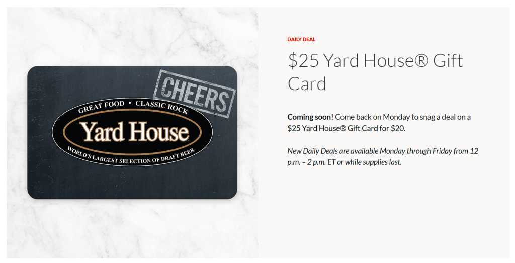 - New deals offered weekdays 12 p.m. – 2 p.m. ET or while supplies last