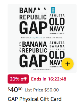[EXPIRED] Amazon (Lightning Deal): 20% Off $50 Gap Options Gift Cards