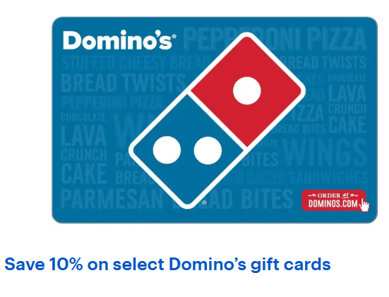 - Save 10% on select Domino’s gift cards [$50 physical and digital, $100 digital]