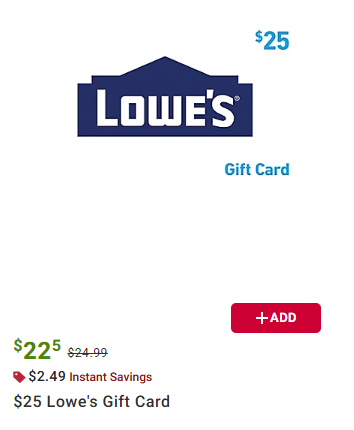 BJ’s website shows two types of deals on third party gift cards. Some of them are labeled “WOW Deal” and others show “Instant Savings” next to them. But a deal can be both “WOW” and have “Instant Savings” too. Plus, some of them expire and some are discounted year round – but – to make matters more complicated, when there are additional savings offered on regularly discounted gift cards, the % off that you are getting is shown based on the regular price rather than face value.- $25 Lowe’s Gift Card for $22.50 ( Instant Savings of $2.49 )
