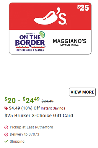 - $25 Brinker 3-Choice Gift Card for $25 (reg, BJ’s price: $24.49)