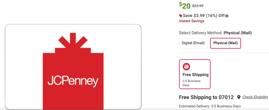 - 25 JCPenney Gift Card for $20 (reg, BJ’s price: $23.99)