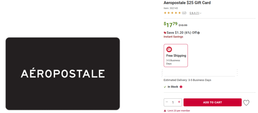 [EXPIRED] BJs.com: $25 Aeropostale Gift Cards for $17.79
