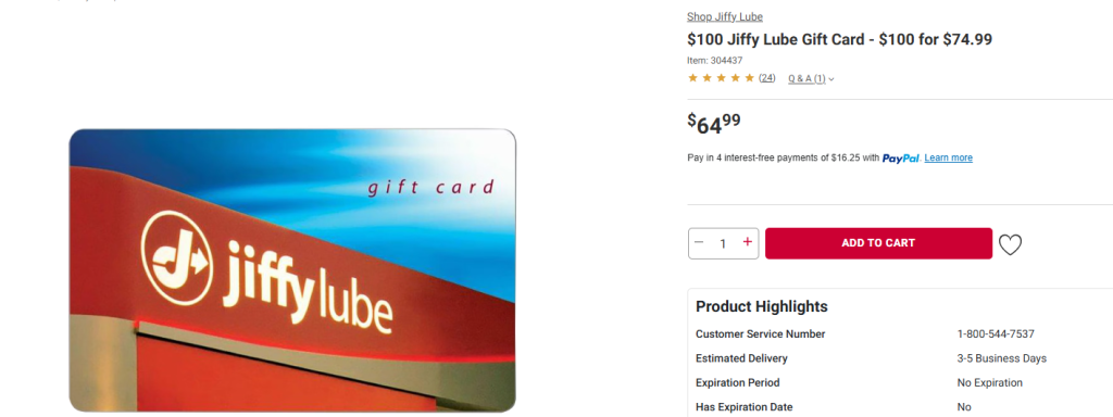- $100 Jiffy Lube Gift Card – $100 for $74.99 Now $64.99 after $10 Instant Savings