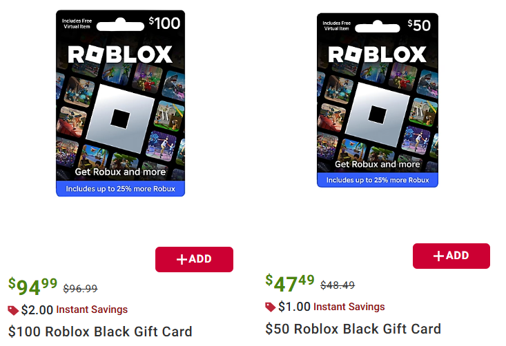 - Roblox Black $50 Gift Card – for $47.49 (reg $48.49) after $1.00 instant savings