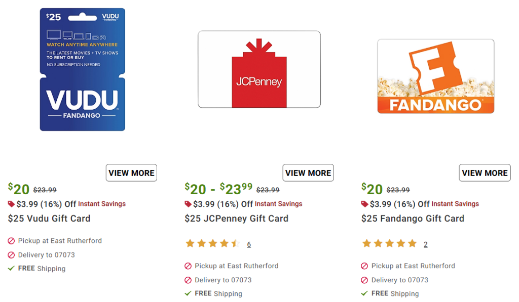 - $25 JCPenney Gift Card for $20 – Physical (limit 10)