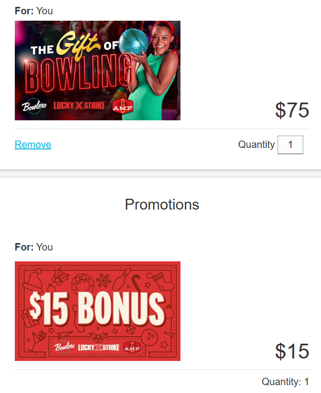 Bowlero/Lucky Strike: Buy $75/$100 Bowlero Gift Card and Get a $15/$25 Bonus Card Free