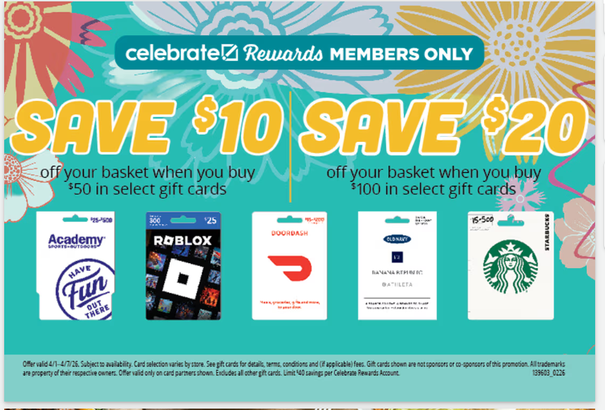 - Limit $40 savings per Celebrate Rewards Account
