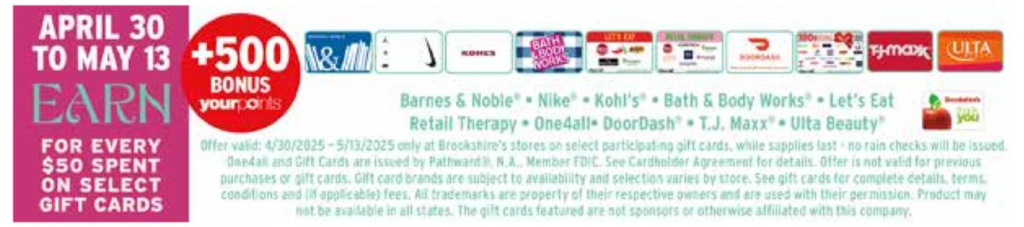 Get 500 Bonus YourPoints for every $50 spent on the following gift cards: