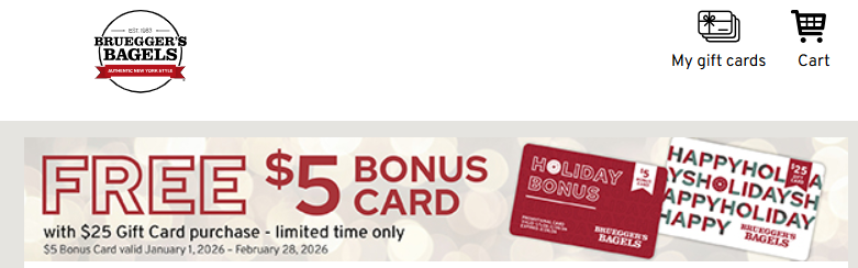 Free $5 bonus card with $25 Gift Card purchase – limited time only.
