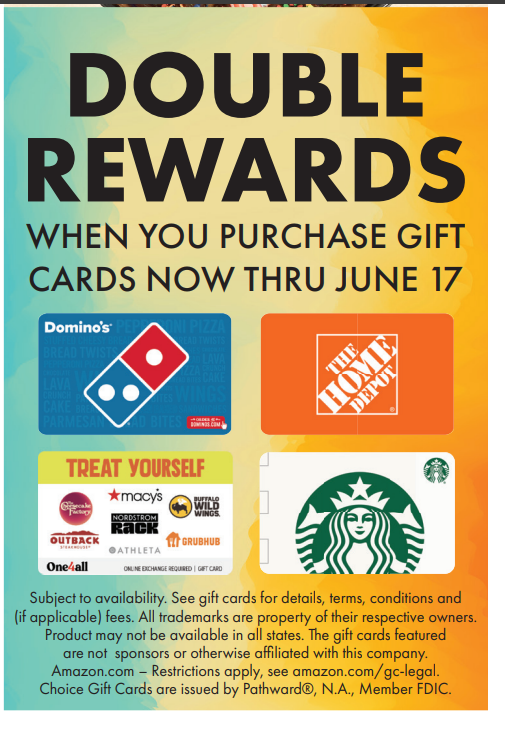 - Purchases of Buehler’s Gift Cards, money orders, Visa and other prepaid reloadable gift cards, purchases from Ace Hardware, fundraising activities are excluded from earning Rewards