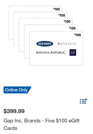 - Gap Inc. Brands – Five $100 eGift Cards for $399.99