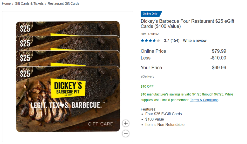[EXPIRED] Costco.com: 30% Off Dickey’s Barbecue Pit Gift Cards