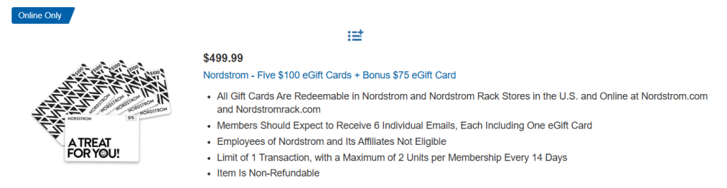 One Comment on “Costco.com: Five $100 Nordstrom Gift Cards and $75 Bonus Card for $499.99”