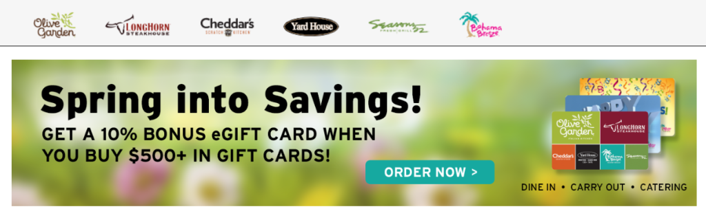 Get a 10% bonus egift card when you buy 500 or more in gift cards