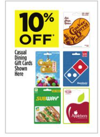 10% off the following gift cards at Dollar General: