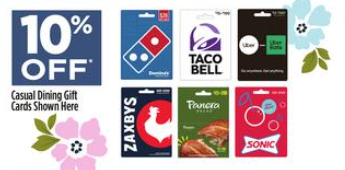 Dollar General: 10% Off Domino’s, Taco Bell, Uber, Zaxby’s, Panera and Sonic Gift Cards