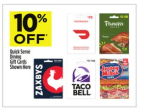10% off the following gift card brands at Dollar General: