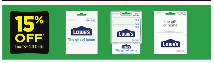 $500 Lowe’s gift cards at 15% off is usually an excellent deal!