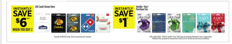 - Buy 2 promotion excludes all $10 gift cards and has a limit of 1 purchase per customer