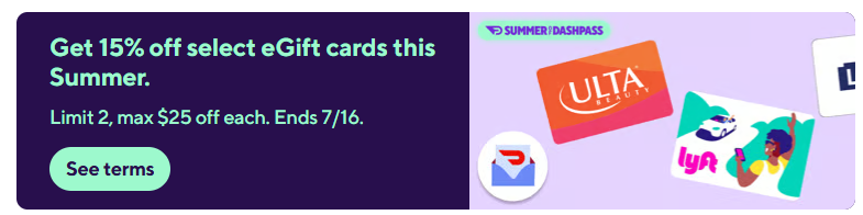 [EXPIRED] DoorDash: Up to 15% Off Select Gift Cards (DashPass Members Only)