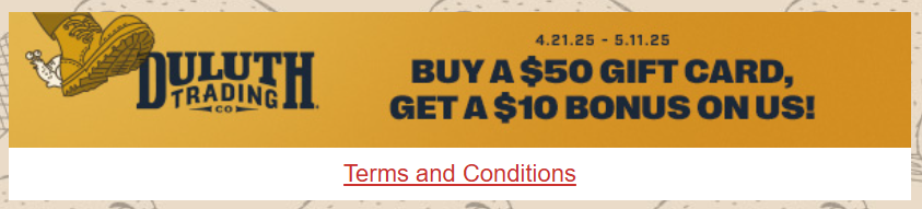 Get a $10 bonus card for every $50 purchased in gift cards, while supplies last.