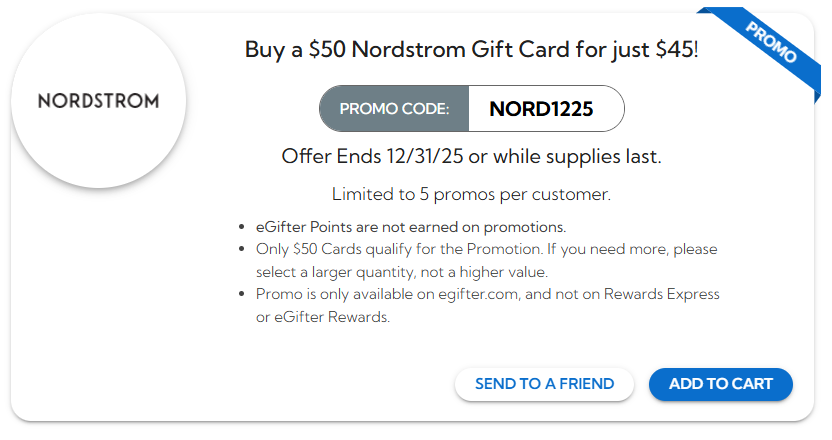 [EXPIRED] eGifter.com: 10% Off $50 Nordstrom Gift Card