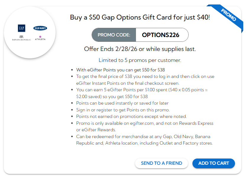 Buy a $50 Gap Options Gift Card for just $40 with promo code: OPTIONS226