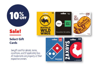 From the ad. it looks like the Domino’s gift card is a $20 card, the Uber gift card is a $50 gift card and the rest are $25 cards.