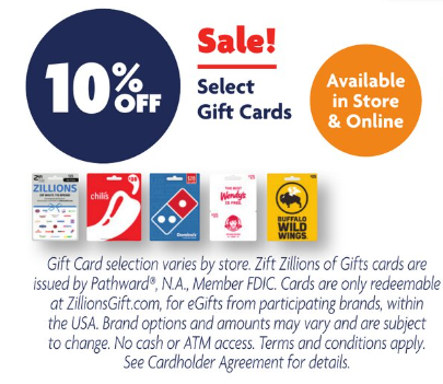 Physical Gift Cards[EXPIRED] Dollar: 10% Off Zillions, Chili’s, Domino’s, Wendy’s and Buffalo Wild Wings Gift Cards June 29, 2025July 6, 2025 - by GCanywhere Staff - Leave a Comment The Deal Get 10% off the following dining gift cards: Zillions of Gifts card Chili’s Domino’s Wendy’s Buffalo Wild Wings Direct link to weekly ad Key Terms Valid June 29 – July 5, 2025 Tips & Ideas