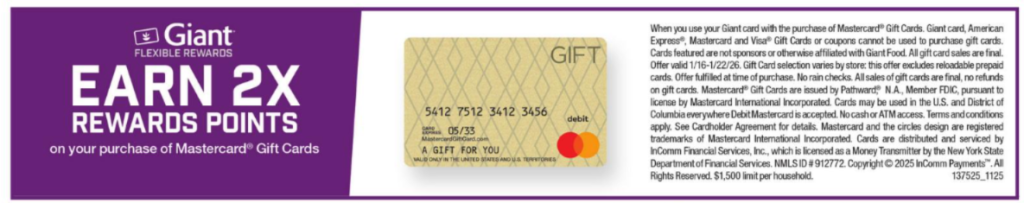 [EXPIRED] Giant Food: 2X Flexible Rewards Points on Mastercard Gift Cards
