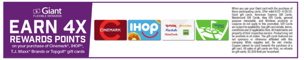 Earn 8X Flexible Rewards Points on the following gift cards:
