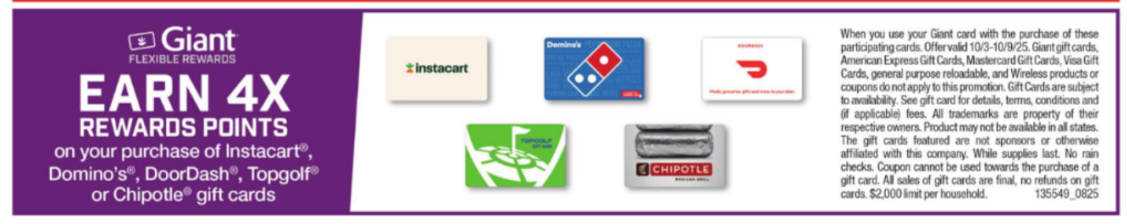 - Must use your Giant card with the purchase of these participating cards