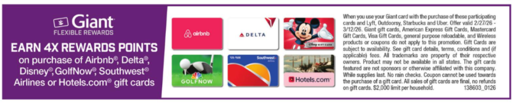 Earn 4x Flexible Rewards Points on the following gift cards: