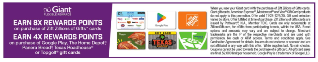 - Earn 8x Flexible Rewards Points on Zift Zillions of Gift Cards