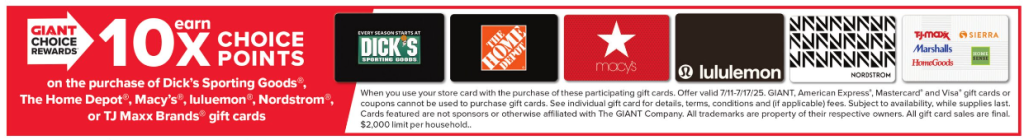 Choice Points may be redeemed at GIANT gas stations for a fuel discount, with or without an online account. 100 points = $0.10 discount per gallon (25-gallon max). Customers must scan their card or enter a phone number at the pump to get their discount.