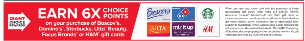 - Giant Gift Cards, American Express, Mastercard and Vanilla Visa gift cards cannot be used to purchase gift cards