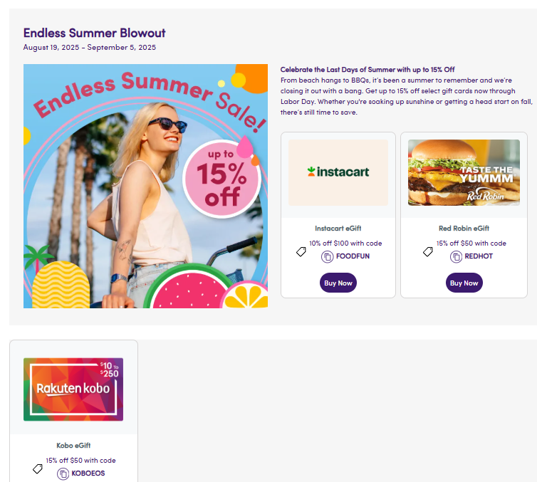 [EXPIRED] Giftcards.com: 10% Off $100 Instacart Gift Cards | 15% Off $50 Red Robin and Kobo Gift Cards