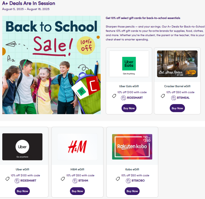 Save 10% on the following gift cards with code BTSDEAL:
